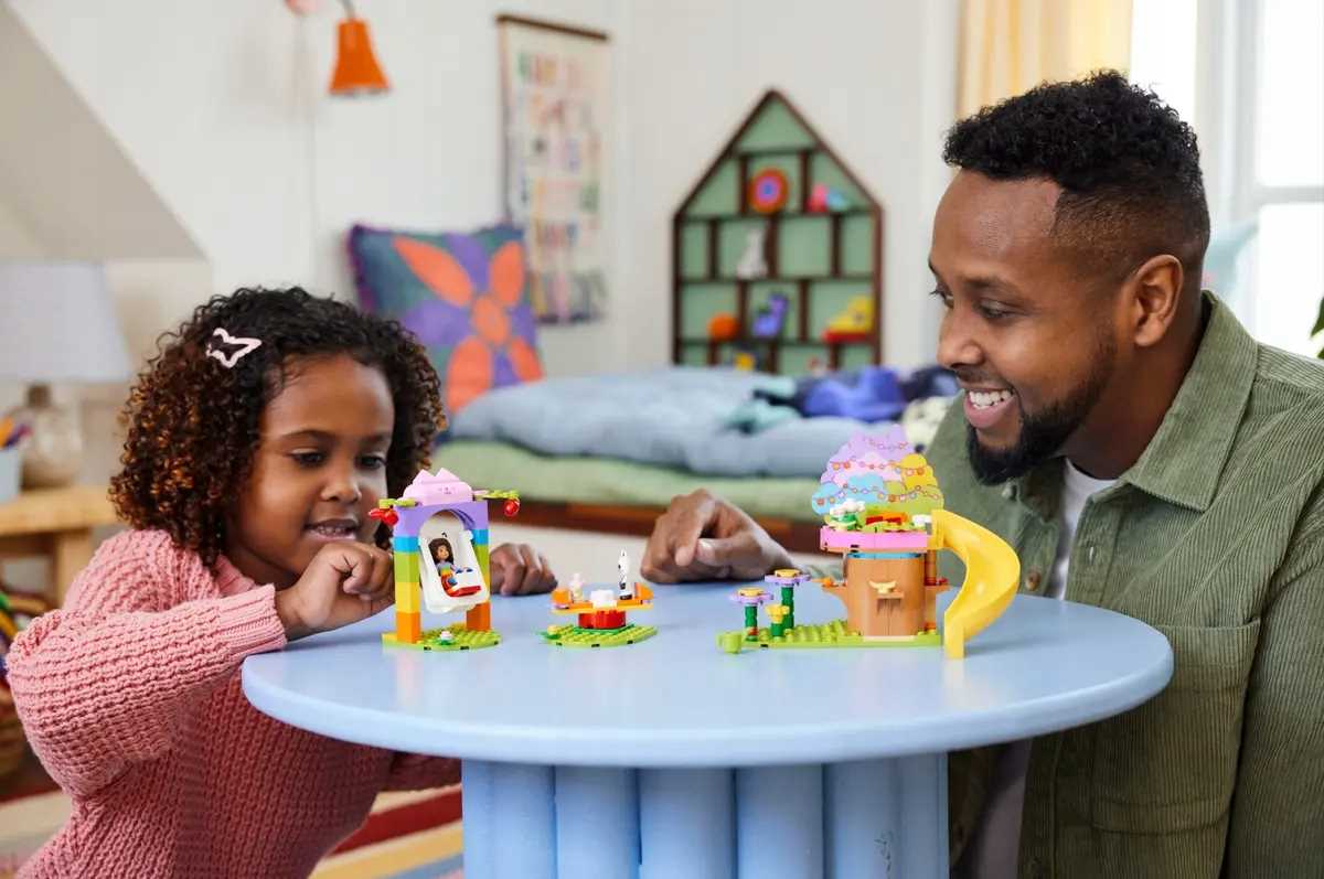 ✅Zestaw zawiera minifigurkę Gabi oraz figurki Kiciusia Pandusia i Wróżkici, a także domek na drzewie do zbudowania z łóżkiem i przekąskami oraz ogród ze zjeżdżalnią, huśtawką i karuzelą