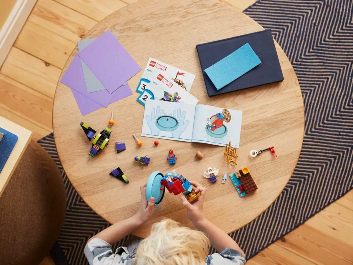 ➡️Zawiera minifigurki Spider-Mana, Zielonego Goblina i Ghost-Spider oraz duży klocek startowy umożliwiający szybkie rozpoczęcie zabawy