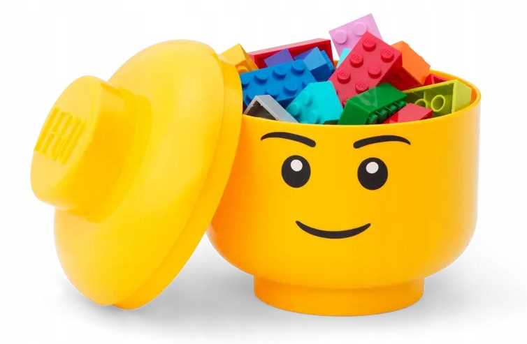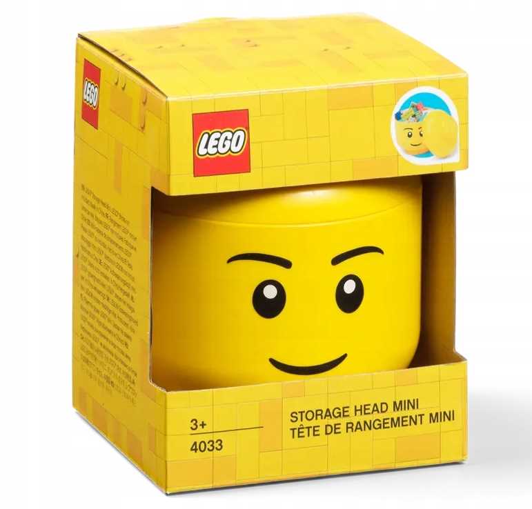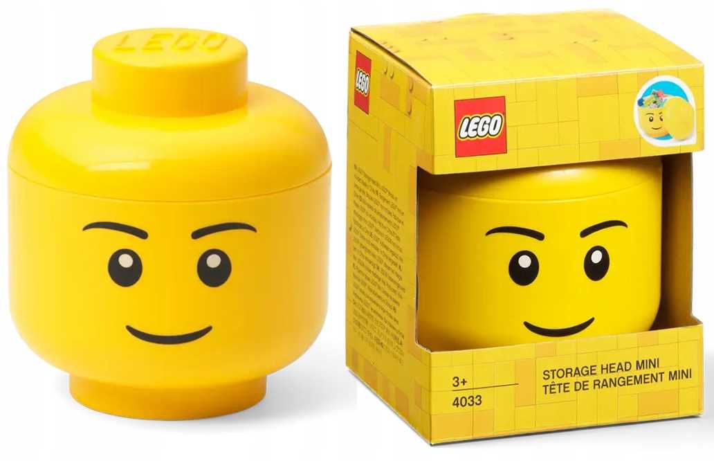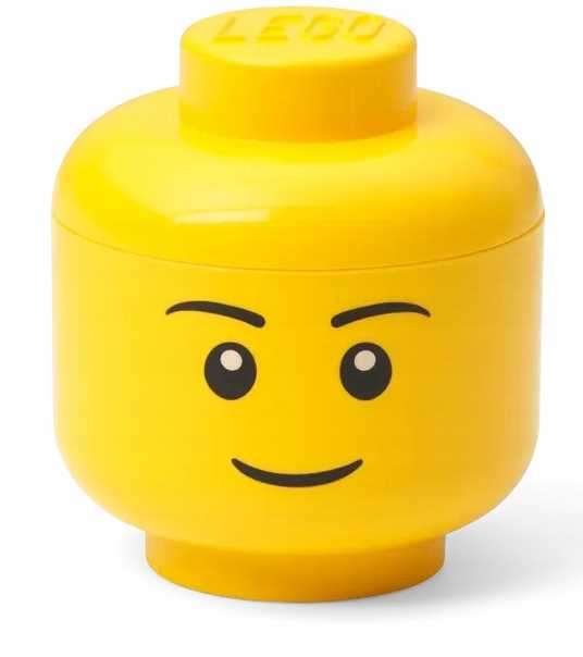 ✅Jasnożółty pojemnik z wizerunkiem głowy kultowej minifigurki chłopca to doskonałe rozwiązanie do przechowywania.