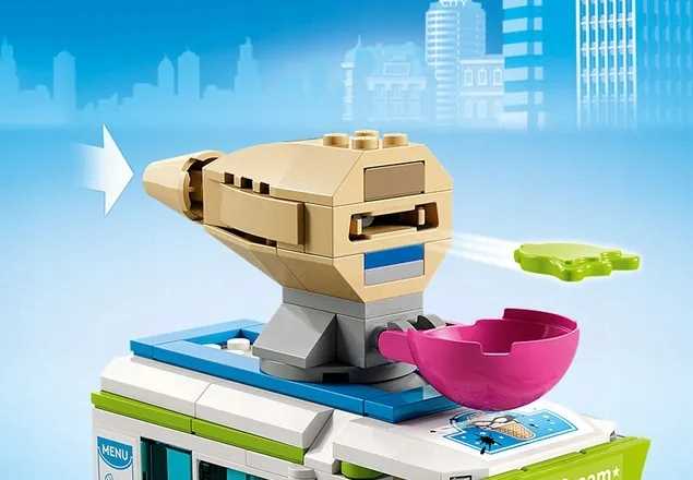 ➡️Wystrzel płaskie elementy LEGO® z furgonetki z lodami.