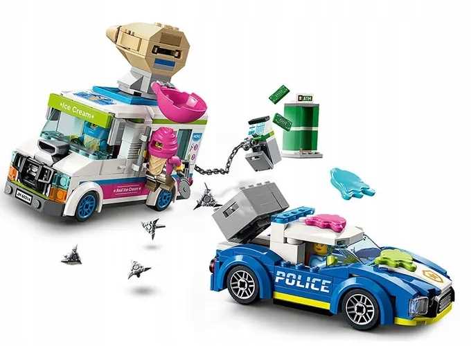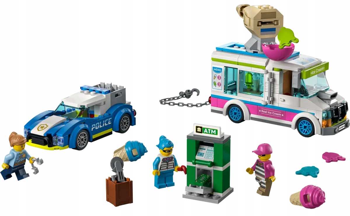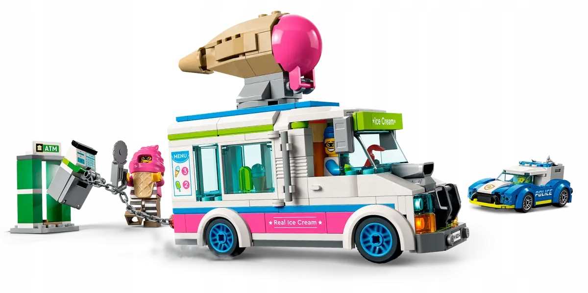 ✅Ten 317-elementowy zestaw ma furgonetkę z lodami, radiowóz, bankomat i 3 minifigurki, w tym 2 postacie z serialu LEGO® City.