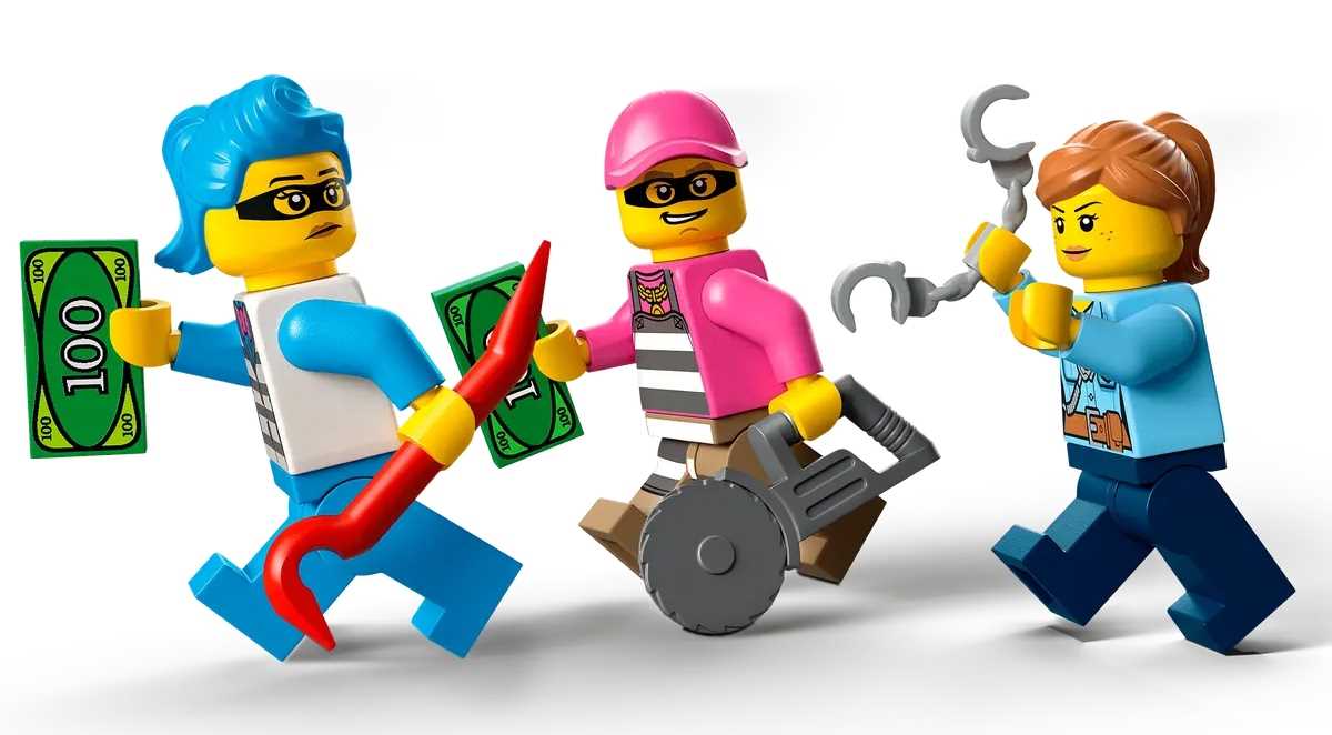 ✅Dzieci mogą strzelać lodowymi pociskami z furgonetki, użyć narzędzia do przekłuwania opon zamontowanego w radiowozie pościgowym oraz odgrywać sceny z serialu telewizyjnego LEGO® City Adventures