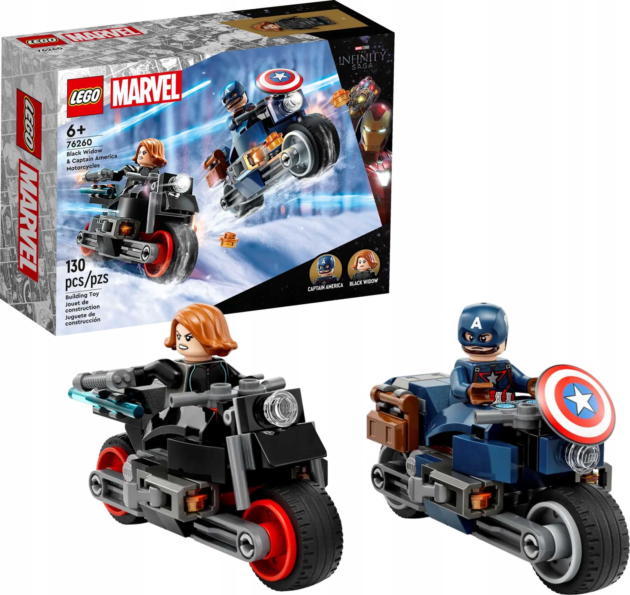 | Nazwa zestawu | LEGO SUPER HEROES – MOTOCYKLE CZARNEJ WDOWY I KAPITANA AMERYKI – 76260 |