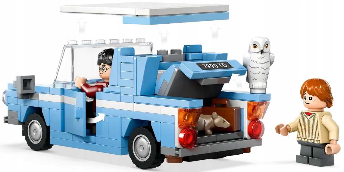 ✅Samochód zbudowany z klocków LEGO® ma otwierane drzwi i zdejmowany dach, dzięki czemu z łatwością można umieścić w nim minifigurki Harry’ego Pottera i Rona Weasleya™ oraz figurkę sowy Hedwigi™.
