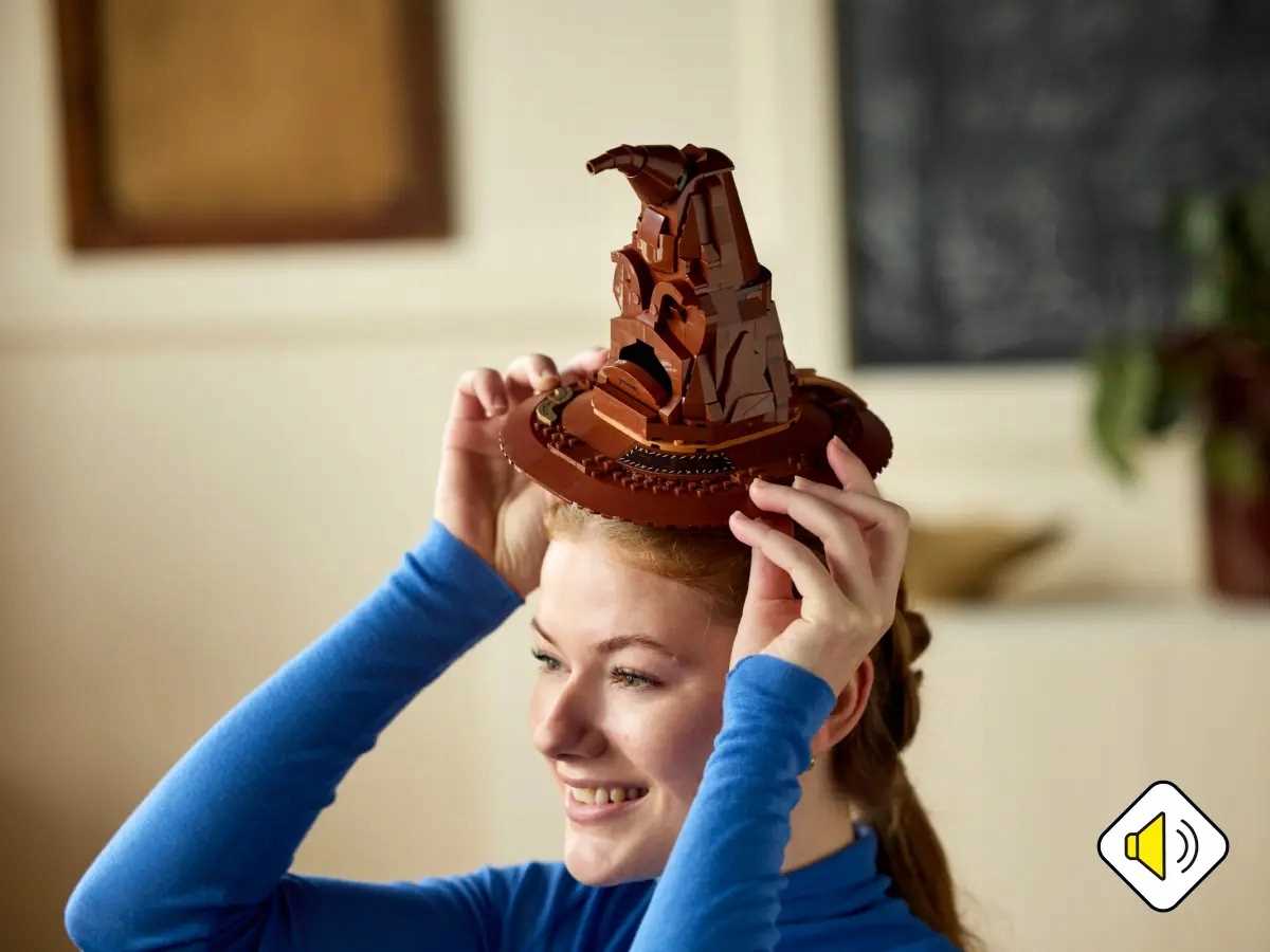 ✅Zrelaksuj się, budując Tiarę Przydziału™ z Hogwartu™ (76429), pierwszy w historii zestaw LEGO® Harry Potter™ z klockiem dźwiękowym, który ożywia ten model.