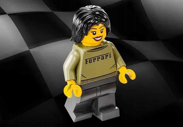 ➡️Minifigurka w stroju Ferrari jest gotowa na wyścig.