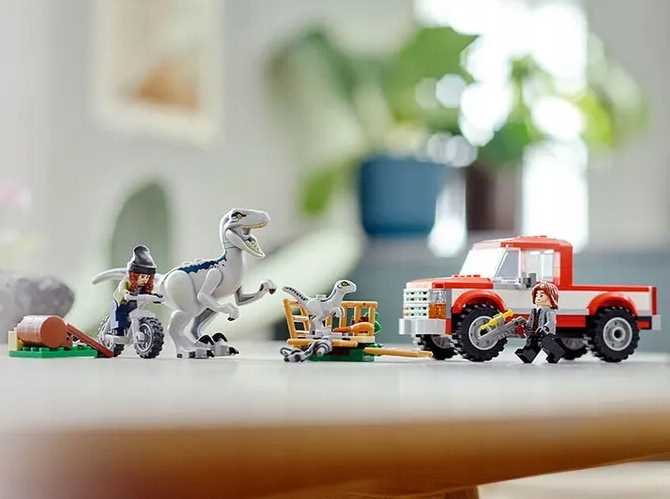 Zestaw dla sześciolatków i starszych dzieci zawiera również dwie minifigurki — Maisie i Rainna Delacourta z bronią ze środkiem usypiającym — oraz figurki dinozaurów Blue i Bety, które zachęcają dzieci do odgrywania ról i wymyślania własnych historii.