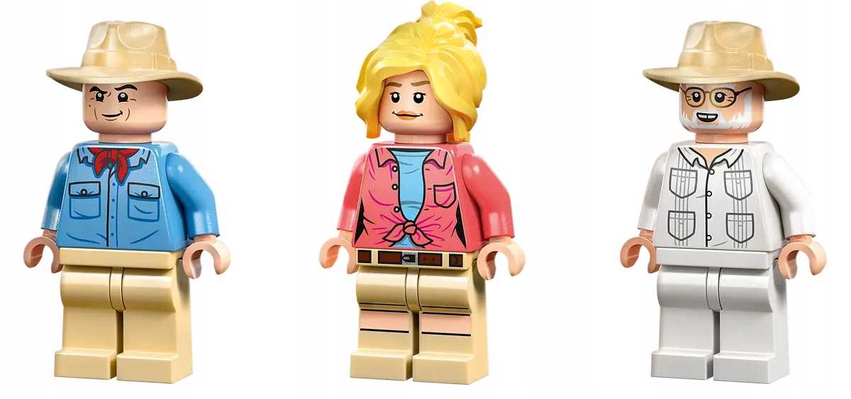 ✅Jeep ma miejsce na trzy minifigurki — dr. Alana Granta, dr Ellie Sattler i Johna Hammonda — a drzewo ma platformę widokową i odczepiane liście, którymi można „nakarmić” brachiozaura, tak jak robił to Alan Grant w filmie.