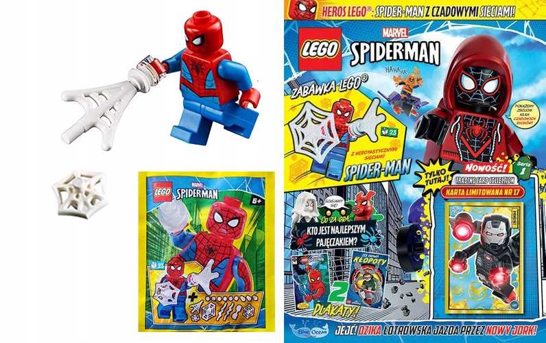 ✅W środku czasopisma znajduje się limitowany zestaw LEGO, który pozwala na zbudowanie minifigurki Spider-Mana wraz z unikalnymi akcesoriami – między innymi siecią i różnymi gadżetami używanymi przez bohatera w jego walce z przestępczością.