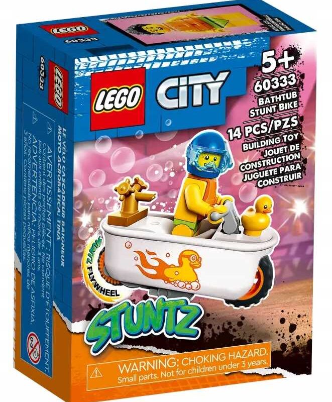 ⭐60333 – LEGO City – Kaskaderski motocykl – Wanna⭐ Kaskaderski Motocykl – Wanna ✅Zestaw LEGO® City Kaskaderski motocykl-wanna (60333) gwarantuje dzieciom zabawę na najwyższych obrotach. ✅Motocykl wyglądający jak wanna napędzany jest kołem zamachowym i potrafi wykonywać niesamowite sztuczki kaskaderskie. ✅Postać LEGO City Stuntz Szymon Pianka z gumową kaczką, maską do nurkowania i kamizelką ratunkową zapewni…