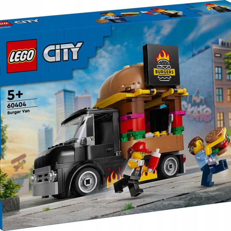 ⭐60404 – LEGO City – Ciężarówka Z Burgerami⭐ LEGO City – Ciężarówka Z Burgerami ✅Zestaw LEGO® City Ciężarówka z burgerami (60404) dla pięciolatków i starszych dzieci pobudzi ich wyobraźnię. ✅Mobilny fast food z wielkim burgerem na dachu można odczepić od ciężarówki. W zestawie jest także szczegółowa kuchnia, składniki i okienko, które otwiera się, ukazując znak…