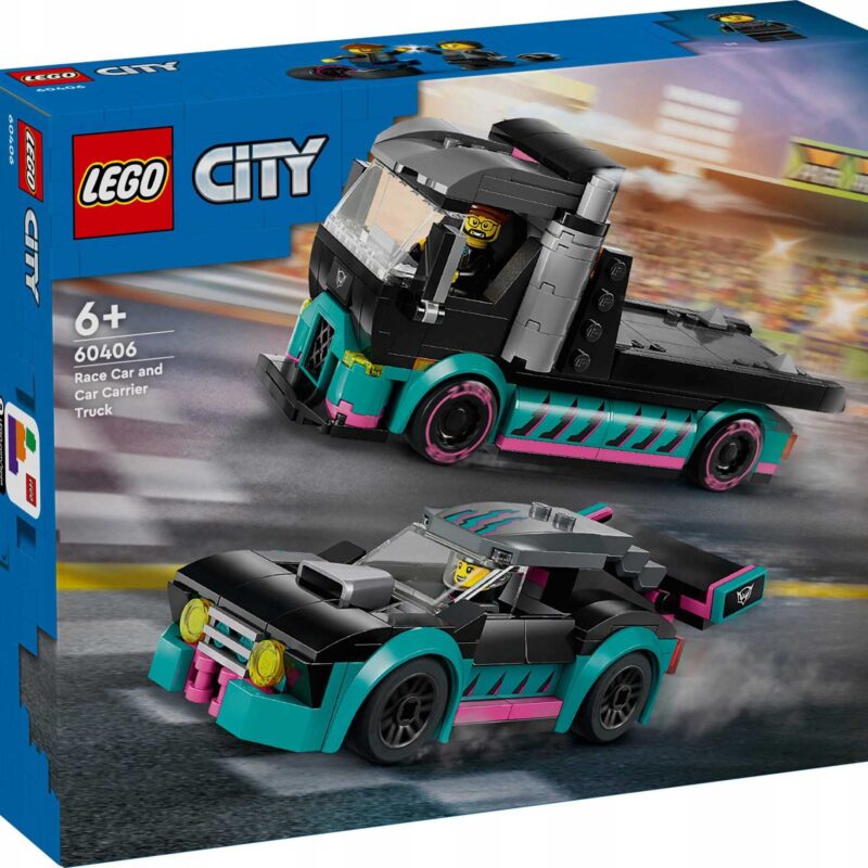 ⭐60406 – LEGO City – Samochód Wyścigowy i Laweta⭐ Samochód Wyścigowy i Laweta ✅Podkręć emocje dzięki zestawowi LEGO® City Samochód wyścigowy i laweta (60406)! ✅To idealny prezent dla małych miłośników samochodów i ciężarówek w wieku od sześciu lat. ✅Zawiera on ciężarówkę wyścigową z działającą rampą załadunkową oraz fajną wyścigówkę z obniżonym zawieszeniem i szerokimi błotnikami….